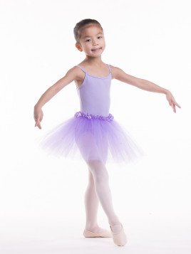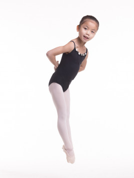 这款柔软、弹性的紧身衣可爱小花在胸前作点缀,有经典的黑色和白色选择,适合所有小芭蕾舞者。