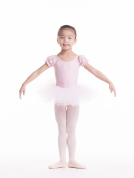 這款柔軟的吊帶背心連身紗裙採用彈力棉質上衣和薄紗裙身製成,彈性布料方便練習不同動作。腰間配以波浪形絲帶點綴,營造出嫵媚動人的氣質,無論排練或日常穿著都非常合適。